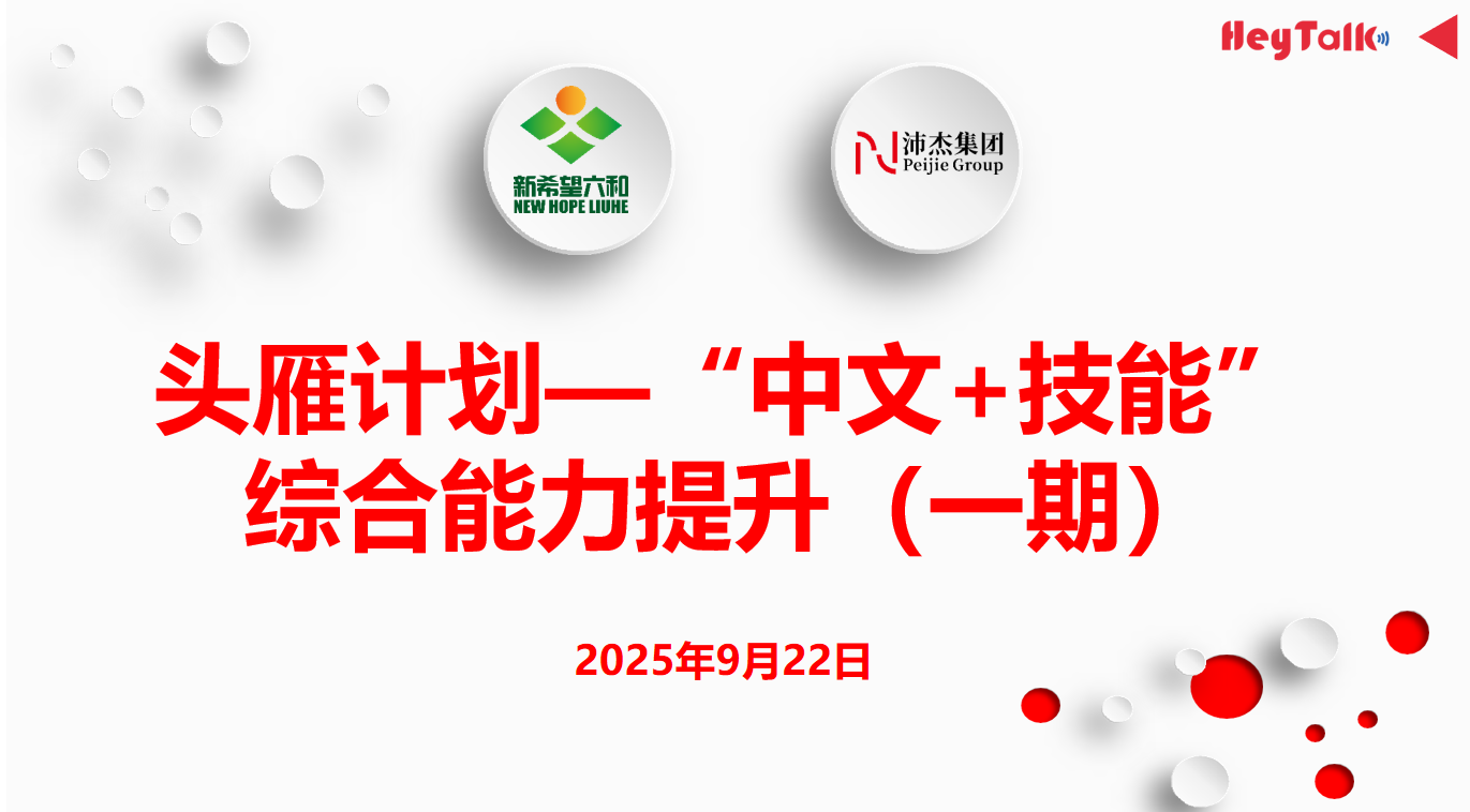 新希望集团作为扎根缅甸市场的重要企业,深谙本土化人才是企业可持续发展的核心动力。“头雁计划”的启动,正是其致力于培养熟悉中国文化、精通业务技能、具备国际视野的本土骨干力量的战略举措。沛杰集团旗下Heytalk凭借专业的课程体系与师资力量,确保培训高质量推进。此举不仅提升了当地员工的职业素养与竞争力,更体现了中资企业积极履行社会责任、与所在地区共同成长的长远承诺,为企业在缅乃至全球的本地化运营树立了典范。
